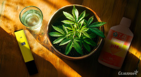 Гров планирую проводить без подкормок как таковых. Только в конце цветения дам монофосфат калия и сульфат магния как альтернативу раскрученному и дорогому «Рипену». Запасов питательных веществ в универсальном грунте с равными долями азота, фосфора и калия, по идее, должно хватить на весь цикл выращивания (по паспорту сорта всего 7 недель). Грунт на треть разбавил перлитом, а в качестве дренирующего слоя на дно 10-литровых гроубэгов уложил пенопласт.